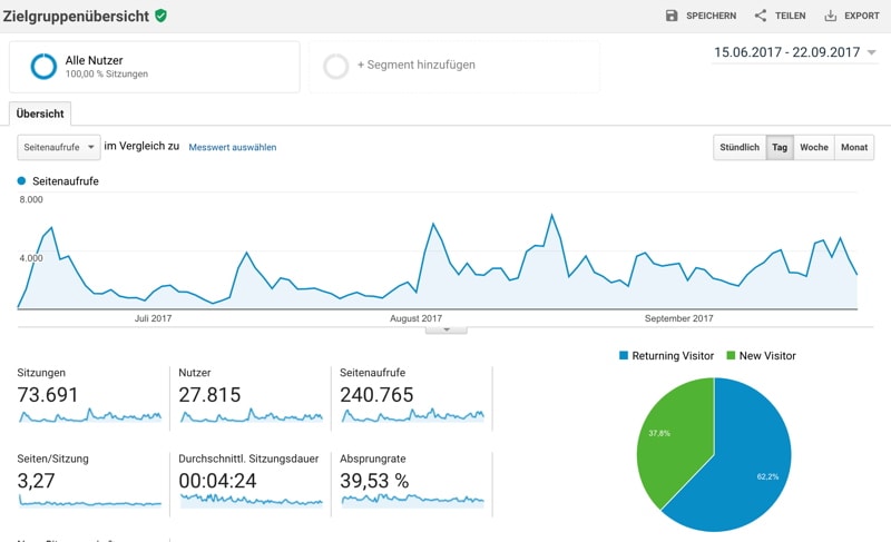 Es ist eindeutig: Die Seite erfreut sich nach wie vor großer Beliebtheit. Inzwischen wurden fast 28.000 Besucher („Nutzer“) gezählt, sie kamen bereits mehr als 70.000 Mal (jeder Besuch wird als „Sitzung“ registriert).