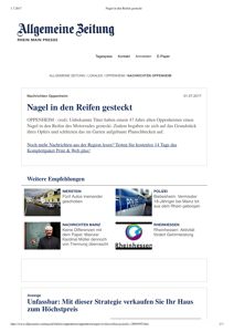 Die „Allgemeine Zeitung Landskrone“ berichtet jetzt doch noch über den Anschlag auf den CDU-Chef Peter Pfau: Am Sonntag veröffentlichte sie auf ihrer Internetseite einen Artikel unter der Überschrift: „,Ich habe keinen konkreten Verdacht‘: Oppenheimer CDU-Chef findet Nägel in Reifen seines Motorrads und Autos“.