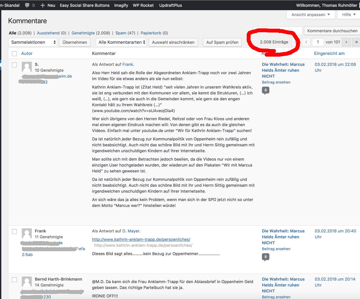 Die Kommentare auf dieser Webseite sind längst viel mehr als Abladeplatz der emotionalen Bewertung einer Lokalpolitik, die eine Stadtgesellschaft spaltet und zerstört. In den Kommentarspalten wird diskutiert, tauscht man sich aus, gibt sich gegenseitig Informationen – und nicht zuletzt manche Hinweise auf weiteres Fehlverhalten der Stadtspitze, denen nachgegangen wurde und die journalistisch aufgearbeitet wurden.